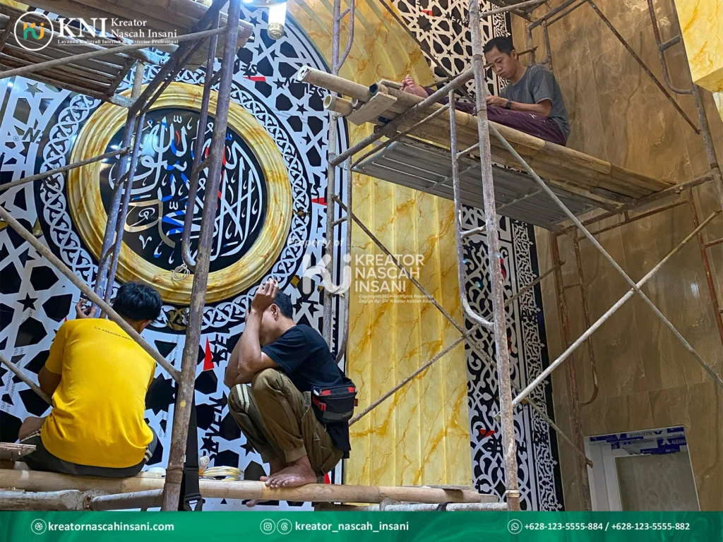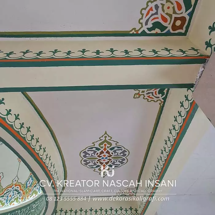 Beberapa contoh penerapan kaligrafi dalam desain interior Islami yang dikerjakan oleh jasa kaligrafi masjid profesional CV. Kreator Nascah Insani, antara lain: